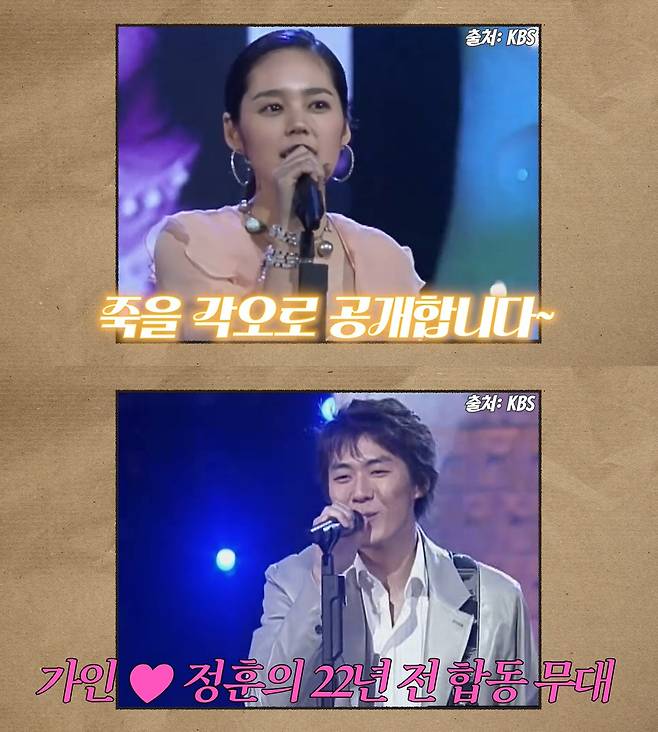 곧이어 공개된 자료화면 속 한가인은 신인 시절 앳된 모습을 자랑하며 연정훈과 합동 무대를 선보여 눈길을 끌었다. 노래는 물론 댄스까지 소화하며 신인 특유의 패기를 드러냈다. "죽을 각오로 공개합니다", "열심히 살았던 신인 한가인"이라는 자막은 웃음을 자아냈다.