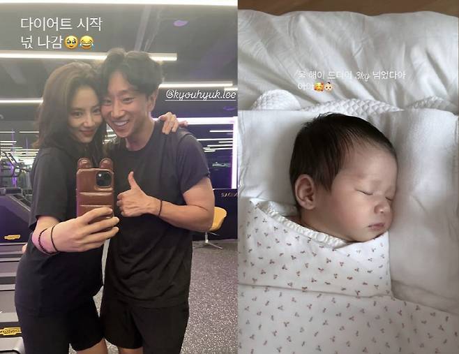 함께 공개된 사진 속 손담비는 출산 13일 만에 몸을 회복해 이규혁과 열심히 운동을 한 모습. 최근 아이를 낳았다는 사실이 믿기지 않을 정도로 부기도 없고 몸매도 임신 전과 다를 바 없어 놀라움을 자아냈다. 딸의 모습도 공개했는데, 특히 벌써 오뚝 솟은 콧대와 올망졸망한 이목구비를 뽐내 눈길을 사로잡았다. 쌔근쌔근 잠이 든 모습이 사랑스럽다.