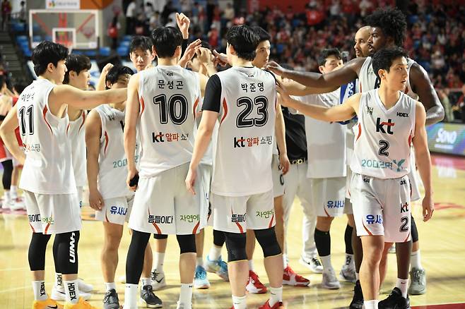 이와 달리 KT는 사실상 기적을 바라야 한다. KT도 SK와 마찬가지로 지금까지 총 8회(올 시즌 제외) 4강에 올랐지만 챔프전에 진출한 것은 2006~2007, 2023~2024시즌 2회뿐이다. 총 6회의 4강 탈락 가운데 1차전 패배한 경우는 4회였다. 2010~2011, 2021~2022시즌에는 나란히 1차전에 승리 이후 3연패로 분루를 삼키기도 했다. '실낱 희망'은 있다. 2023~2024시즌부터 달라진 KT다. 1년 전, KT는 LG와의 4강전에서 1차전 패배에도 최종 3승2패로 챔프전에 진출했다. KT의 4강 PO 사상 첫 뒤집기 성공이었다. 올 시즌 6강 PO에서도 KT는 대구 한국가스공사에 1차전 패했다가 접전 끝에 3승2패로 4강에 올랐다. 지난 시즌까지 92.6%(총 54회 중 50회)에 달했던 '6강 1차전 승리팀의 4강 진출 확률'을 거스른 것이다. 또 다른 6강전에서 현대모비스가 안양 정관장에 3연승하며 '확률 법칙'에 충실했던 것과 달리 두 시즌 연속 '숫자에 불과하다'를 입증한 KT는 이번 4강전도 해볼만하다는 입장이다. KT 관계자는 "6강 5차전까지 가는 혈투 이후 푹 쉬고 나온 SK에 4강 1차전 박빙으로 패한 것은 오히려 희망적이다"면서 "실패율 92%대 좁은 문도 뚫었는데 4강 '77.8% 확률'도 깨지 못하라는 법 있겠느냐"고 말했다.