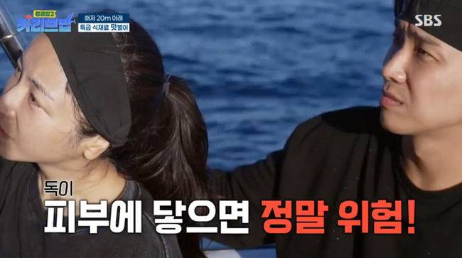 24일 방송된 SBS ‘정글밥2 - 카리브밥’에서는 김옥빈과 이준이 독이 있다는 라이언피시 수중 사냥에 나섰다.