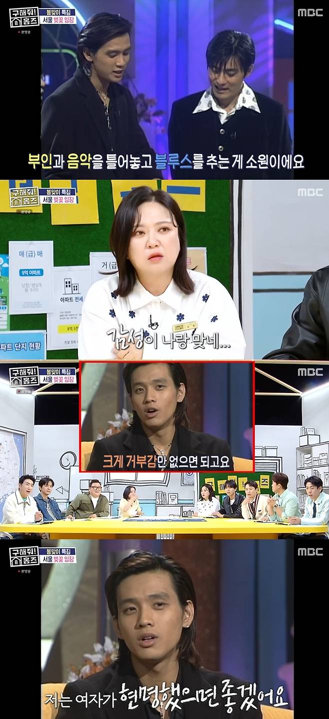 방송에서는 과거 구본승의 인터뷰 영상도 공개됐다. 당시 그는 "나중에 결혼하면 부인과 음악을 틀어놓고 블루스를 추는 게 소원이다"라며 로맨틱한 면모를 드러냈고, 이를 본 김숙은 "감성이 나랑 맞다"고 호감을 표했다.