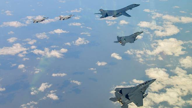 ▲ 한미 연합공중훈련에 참가한 B-1B(제일 앞)