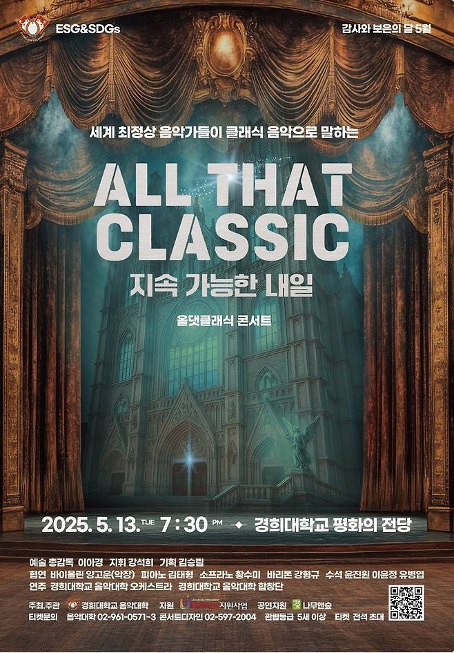 ‘올 댓 클래식(ALL THAT CLASSIC) : 지속가능한 내일’은 경희대학교 음악대학 학장인 이아경(메조 소프라노)가 경희대학교 개교 76주년 그리고 음악대학 개교 70주년을 기념해 쉽게 문화공연을 접하지 못하는 문화소외계층, 저소득층, 다문화 가정 등과 지역주민들을 초대, 음악을 통해 화합을 이루고자 기획한 공연으로, 120명 규모의 오케스트라와 100명의 합창단이 어우러지는 대규모 공연이다.