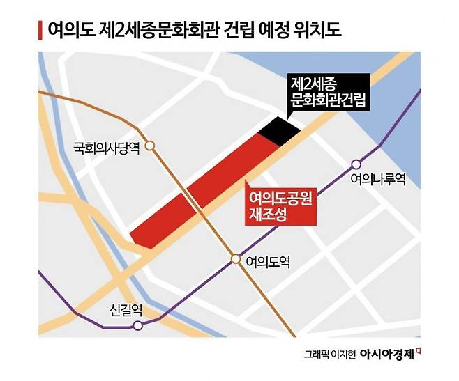 현 계획대로라면 제2세종문화회관은 마포대교 방면 여의도공원 끝자락 총 22만9539㎡ 부지에 총 2000석 규모 대공연장과 800석 규모 중극장 등을 포함해 세워진다.
