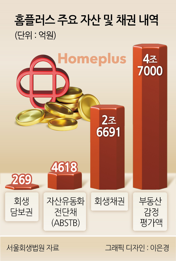 홈플러스의 약 2조원 규모 금융채권자와 ABTSB 투자자들은 원금 손실 위험에서 빗겨나 있는 편이다. 최대 최권자인 메리츠금융그룹의 채권 금액은 1조2000억원, 담보는 홈플러스 부동산 자산 전체다. 감정가액은 4조7000억원에 달해 담보인정비율(LTV)이 25%로 담보 여유가 크다.