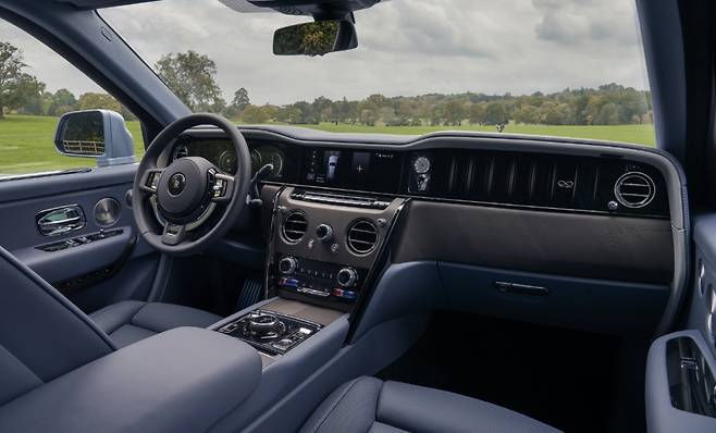 실내는 다양한 소재와 기법을 활용한 우아한 표현이 돋보인다. 블랙우드 소재의 전면 페시아와 뒷좌석 사이를 나누는 ‘워터폴(Waterfall)’ 섹션에는 데이지 모티프를 적용했다. 이 디테일은 미세한 광물 입자를 목재 표면에 분사한 후 정교하게 깎아내는 ‘샌드 블라스팅’ 기법으로 구현한 것이다. 조각된 표면을 가로지르는 빛과 그림자가 입체적인 시각 효과를 연출하며 섬세한 아름다움을 완성한다.