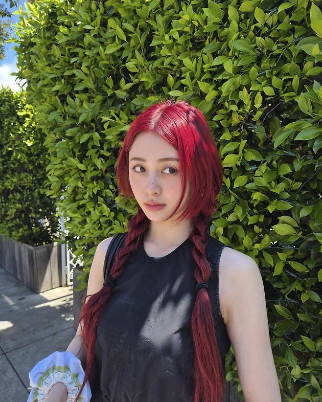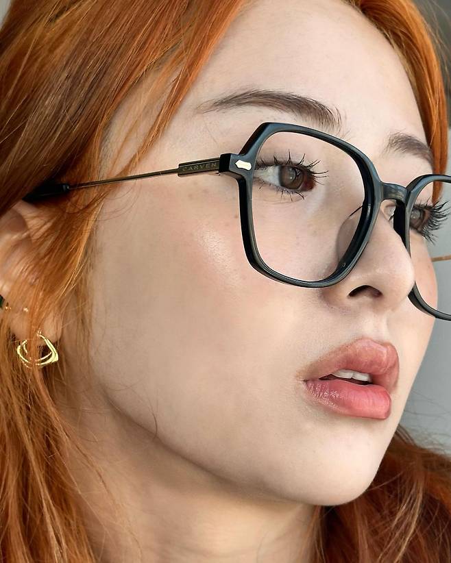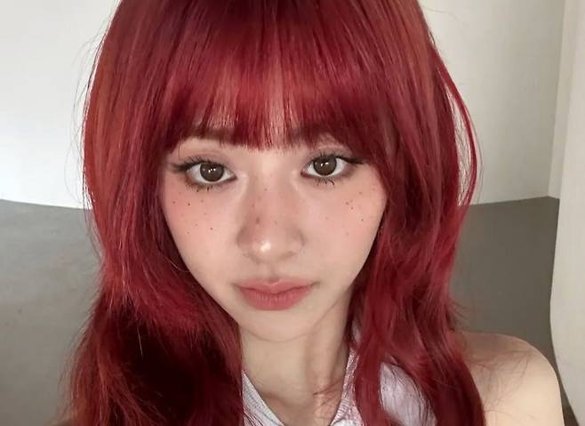 윤진의 시그니처 헤어 컬러 중 하나인 레드 . 삐삐를 연상케 하는 강렬한 빨강 머리에는 웜톤 메이크업이 찰떡입니다. 또렷한 아이라인과 길게 뻗은 속눈썹, 은근한 주근깨 디테일로 내추럴하면서도 빈티지한 무드를 살렸어요. 블러셔는 따뜻한 피치 톤으로 사랑스러움을 더했습니다.