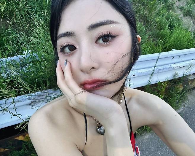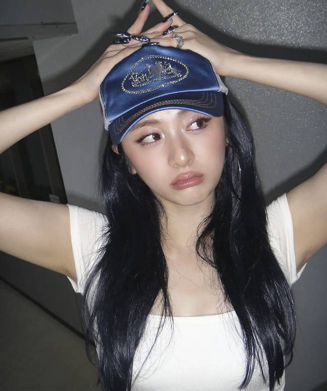 블랙 헤어는 그 자체로 이미 강렬해요. 그래서 메이크업은 과하지 않은 임팩트가 핵심이죠. 윤진은 베이지와 분홍 섀도우로 눈두덩이를 부드럽게 물들였어요. 아이라인은 눈꼬리를 살짝 내려 자연스럽게 빼주되, 블랙으로 또렷하게 그려 시선을 잡아줬고요. 콧등 옆에 쿨한 핑크 블러셔로 은근한 색감 플레이를 펼치고, 립은 말린 장미 컬러로 분위기 있게 마무리했네요. TIP 블랙 헤어엔 선명한 윤곽보다 결감 있는 무드를 살리는 게 훨씬 세련돼 보여요. 포인트를 주고 싶다면 허윤진처럼 눈썹 아래 반짝이는 펄을 붙여보세요.