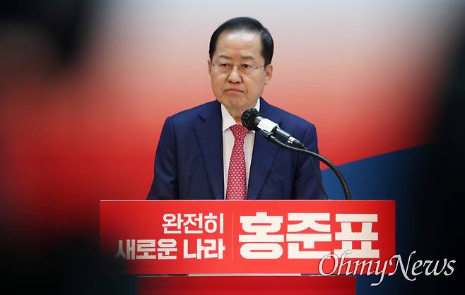 | ▲ 홍준표 긴급 기자회견 홍준표 국민의힘 대선 경선 후보가 24일 오전 서울 영등포구 캠프사무실에서 긴급기자회견을 하고 있다. |