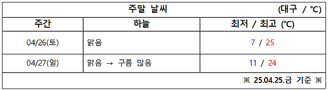 4월 4주 차 대구·경북 주말 ‘날씨 체크’