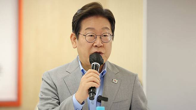 ▲ 25일 전남 나주 전남농업기술원 청년창농타운에서 열린 간담회에서 더불어민주당 이재명 대선 경선 후보가 발언하고 있다.