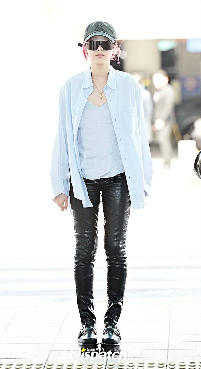 지젤은 오버핏 블루 셔츠와 타이트한 가죽 팬츠를 매치해 남다른 패션감각을 뽐냈다. 무보정에도 완벽한 몸매가 돋보였다.
