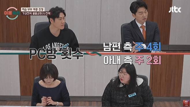 이어 부부는 남편이 좋아하는 PC방과 부부관계 문제로 협상을 벌였다. 20대의 어린 남편은 PC방에 덜 가는 대신 부부관계를 늘리겠다며 기상천외한 물물교환 카드를 제시하기도 했다. 아내는 여전히 자기 생각만 하는 철없는 남편의 요구에 황당한 기색을 감추지 못했다. 서장훈은 "앞으로 남편이 잘 돼도, 안 돼도 걱정된다. 갑자기 딴 생각먹고 어디 도망가지는 않을까 걱정된다"며 예측 불가능하고 충동적인 남편이 또다시 일탈할 가능성을 우려했다.