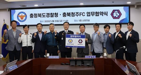 충북청주프로축구단(이하 '충북청주FC')이 충청북도경찰청(이하 '충북경찰청')과 도민의 안전을 위한 범죄 및 사고 예방 홍보에 상호 협력하는 내용의 업무협약을 체결했다.