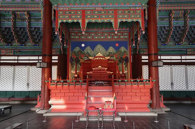 | ▲ 경복궁 근정전 내부. 앞에 보이는 것은 임금이 앉는 어좌다. |
