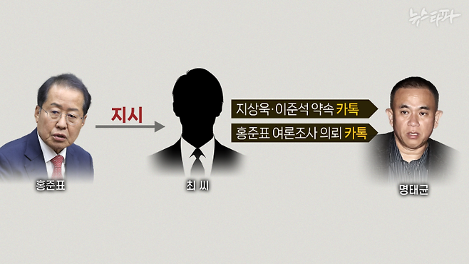 카톡 대화를 보면, 최 씨는 홍 후보의 지시 사항을 명 씨에게 그대로 전달하는 '비선 메신저'였다. 지금까지 뉴스타파의 취재를 종합하면 최 씨는 ▲홍준표-명태균-이준석 만남뿐만 아니라 ▲홍준표-명태균-지상욱의 만남을 중간에서 조율하거나, 홍 후보를 대신해 명태균에게 여론조사를 의뢰하고, 비용까지 대신 납부한 그야말로 홍준표의 '최측근'이라고 볼 수 있다.