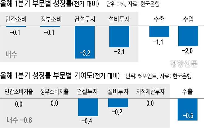 1분기 ‘역성장 쇼크’, 올 성장률 0%대로 이어지나···‘기준금리 1%대’ 전망도