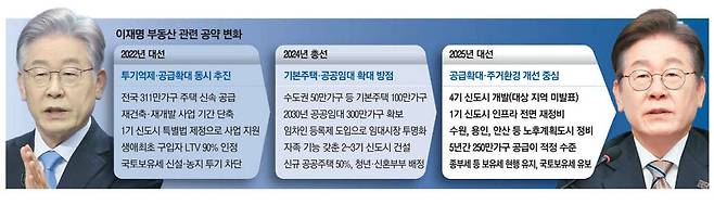 25일 이재명 전 더불어민주당 대표의 부동산 공약이 윤곽을 드러냈다. 부동산 정책은 대통령선거 때마다 수도권 표심에 상당한 파급력을 미쳤던 민감한 이슈다. 대선 레이스에서 유리한 입지를 구축하고 있는 이 전 대표는 보유세 강화 등 표심에 부정적 영향을 줄 수 있는 카드는 서랍 안에 넣는 대신 공급 확대와 주거 환경 개선을 테이블에 올렸다. 부동산 정책도 '우클릭'을 하면서 문재인 정부의 실패 사례와 차별화하겠다는 전략으로 읽힌다.