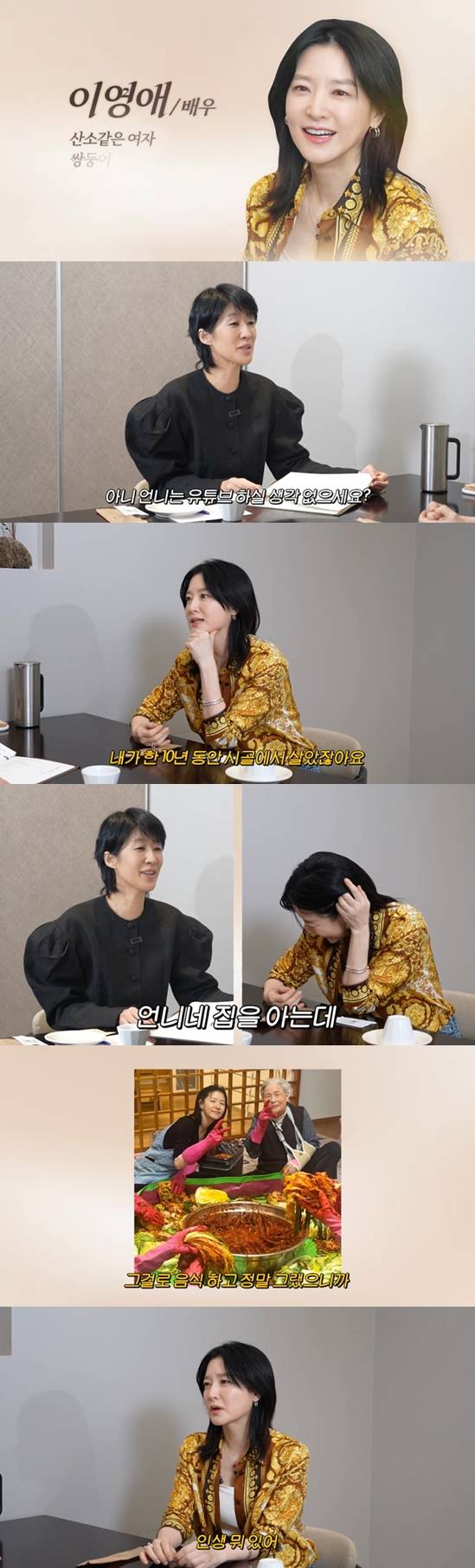 이영애는 "그런 게(유튜브 제안이) 왔었다. 애 낳고 나니까 인생 뭐 있어 재밌게 사는 게 최고지 한다"라며 덧붙였다.