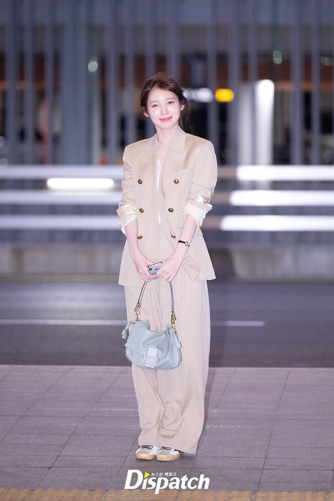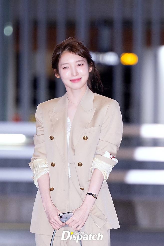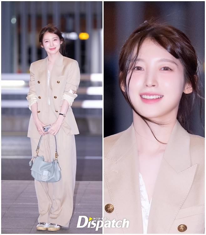 아린은 베이지 수트로 우아한 공항패션을 연출했다. 인형같은 미모가 돋보였다.
