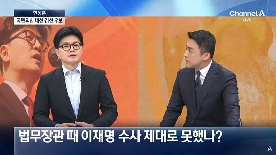 한 후보는 오늘(25일) 채널A '뉴스A'에 출연해 김문수 홍준표 두 후보가 공통적으로 했던 질문이 법무부 장관 때 왜 이재명 더불어민주당 대선 경선 후보를 제대로 수사 못했냐는 것이라는 질문에 이같이 답했습니다.