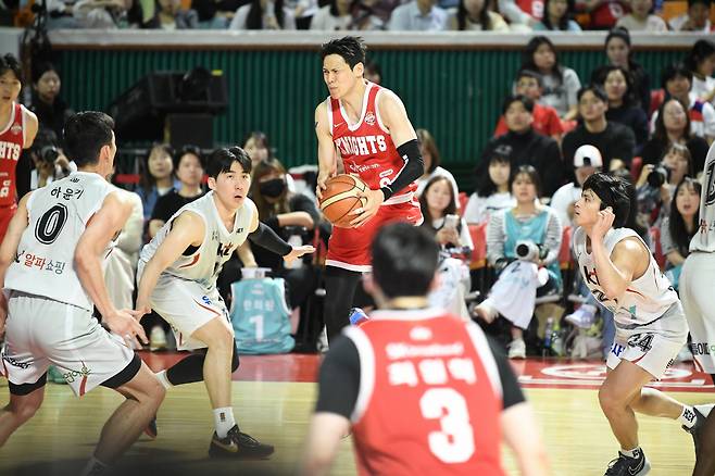 SK는 25일 서울 잠실학생체육관에서 벌어진 '2024~2025 KCC 프로농구' 4강 플레이오프 2차전 수원 KT와의 경기서 86대70으로 승리했다.