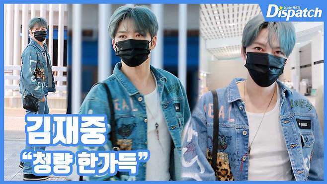 이날 김재중은 블루 헤어 컬러와 청청 데님 패션으로 청량한 매력을 뽐냈다.
