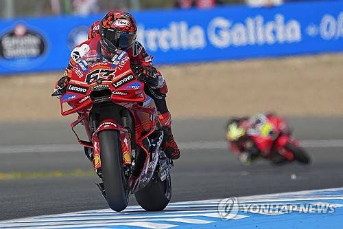 epaselect epa12053865 Ducati Lenovo Team rider Francesco Bagnaia of Italy participates in the MotoGP Free Practice session for the Motorcycling Grand Prix of Spain, in Jerez de la Frontera, Spain, 25 April 2025. The Motorcycling Grand Prix of Spain is held at the Circuito de Jerez - Angel Nieto racing track on 27 April 2025. EPA/Jose Manuel Vidal