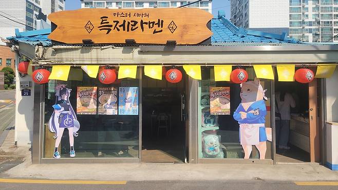 가게 앞에 도착하니 간판부터 유리벽까지 게임 속 시바세키 라멘을 구현하고자 노력한 흔적이 곳곳에 보였다. 지나가던 사람들은 여기에 새로운 음식점이 들어섰다고 착각했다. 오죽하면 '예약해야 먹을 수 있는 맛집인가'라는 이야기도 들려왔다. 바로 옆에서 사진 스튜디오를 운영 중이던 사장님도 왜 이렇게 사람이 많은지 나와서 직접 물어볼 정도였다.