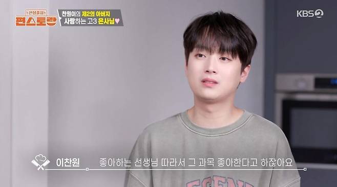 선생님은 이찬원이 정성스럽게 준비한 음식들을 맛있게 먹었다. 이찬원의 미담도 공개됐다. 당시 그는 3년 내내 반장을 했다고 했다.