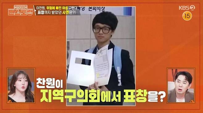 또 선생님은 "학교로 서류가 하나 도착했다. 지역구 의회에 접수된 제보 때문이었다"며 과거 이찬원의 선행을 언급했다. 고등학교 시절, 이찬원은 야간 자율학습 후 친구를 만나러 가던 중 우연히 데이트폭력 사건을 목격, 취객과 실랑이를 벌이는 여성을 구했다. 이에 지역구 의회에서 표창까지 받은 것으로 알려졌다.