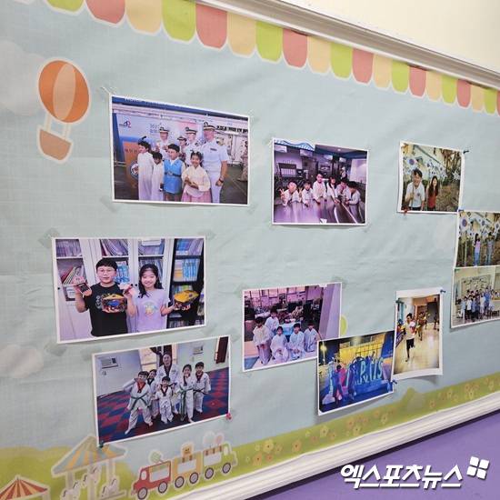 복도 벽면에는 학생들이 그린 그림이 걸려 있었는데 초등학생이 그린 그림이라고는 믿어지지 않을 정도였다. 또한 기념 사진들이 곳곳에 붙어 있어 학생들의 추억도 깃들어 있었다.