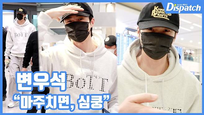 이날 변우석은 화이트 후드티에 캡 모자와 마스크를 착용해 내추럴하면서 캐주얼한 모습을 보여줬다.