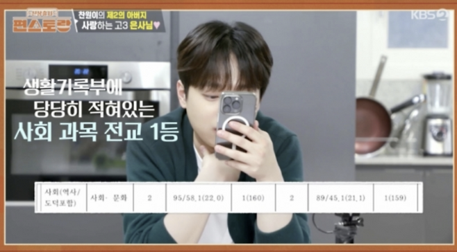 [TVis] 이찬원, 고교 생활기록부 보니…사회 과목 전교 1등 ‘눈길’ (‘편스토랑’)