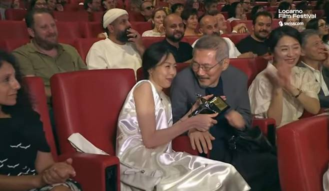 또한 '수유천'으로 지난해 8월 제77회 로카르노 영화제 최우수연기상도 수상했다. 당시 김민희는 "이렇게 아름다운 영화 만들어주신 홍상수 감독님, 저는 당신의 영화를 너무 사랑한다. 함께 작업하게 해주셔서 너무 감사드린다"고 소감을 밝혔다. 그리고는 홍 감독의 어깨에 기대며 수상의 기쁨을 함께 나눴다.