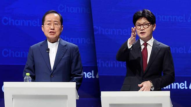 한 후보는 또 "왜 국민의힘 후보가 대통령이 된 뒤 이재명 전 대표와도 같이 가겠다는 말을 하느냐"고 몰아붙였고, 홍 후보는 "윤 전 대통령과 한 전 대표가 나라를 어떻게 운영해서 나라가 이 꼴이 됐느냐"며 "야당을 인정하고 소통하며 설득하지 않고, 타도와 경멸의 대상으로만 삼다 보니 충돌해서 이 꼴이 된 거 아니냐"고 받아쳤습니다.