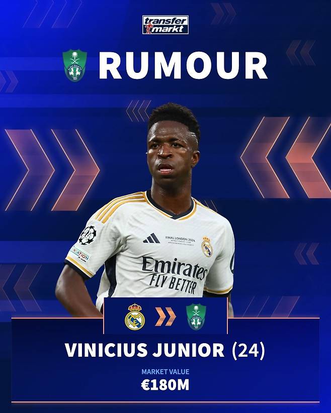 독일 빌트의 플로리안 플레텐버그 기자는 지난 14일 자신의 X(前 트위터)를 통해 “비니시우스의 사우디 이적 가능성이 여전히 존재한다”고 터트렸다.