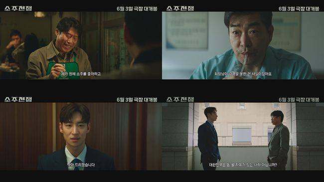[OSEN=유수연 기자] 올여름 극장가 신선한 즐거움을 선사할 기대작 '소주전쟁'이 국민 소주를 놓고 벌이는 흥미진진한 사투를 담은 1차 예고편을 전격 공개해 예비 관객의 기대감을 높이고 있다.