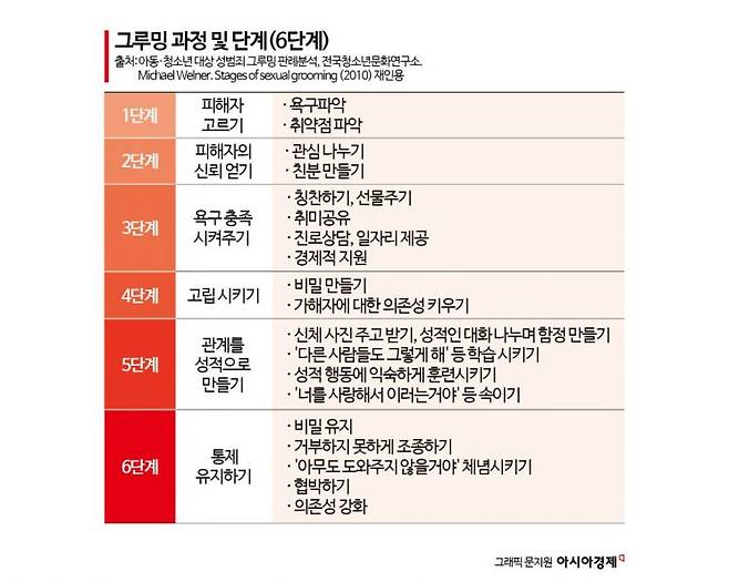 또한 "아동·청소년들한테도 '섹시하다'고 말하는 것이 칭찬이 용인되는 사회에서 온라인에서 누군가로부터 주목받고 싶은 아이들이 욕구를 성 착취범이 너무 잘 활용한다"면서 "그루밍을 통해 성범죄가 더욱 쉬워졌다"고 했다.