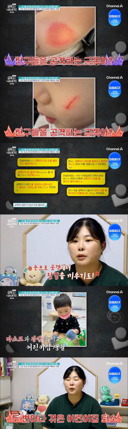 25일 오후 방송된 채널A ‘요즘 육아 - 금쪽같은 내새끼’에서는 ‘친구를 공격해 어린이집을 다닐 수 없는 30개월 아들’의 사연이 공개됐다.
