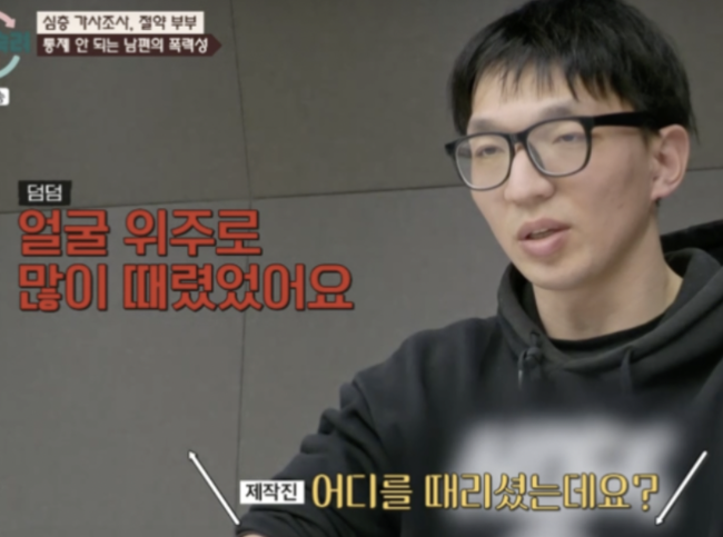 특히, 아내가 이혼을 원했고, 남편은 이혼을 원하지 않지만 그럼에도 불구하고 이혼을 신청한 상황에서 방송은 시작됐다. 아내는 남편의 ADHD 성향과 결혼 전 숨겨진 빚 문제를 드러내며 이혼을 결심하게 된 이유를 털어놨다. 하지만 상황은 더 악화되었다. 남편은 폭력적인 성향을 보였고, 그 강도가 점차 심각해지면서 폭력 사건도 있었다며 당시 상황이 추측되는 적나라한 사진을 공개하기도.