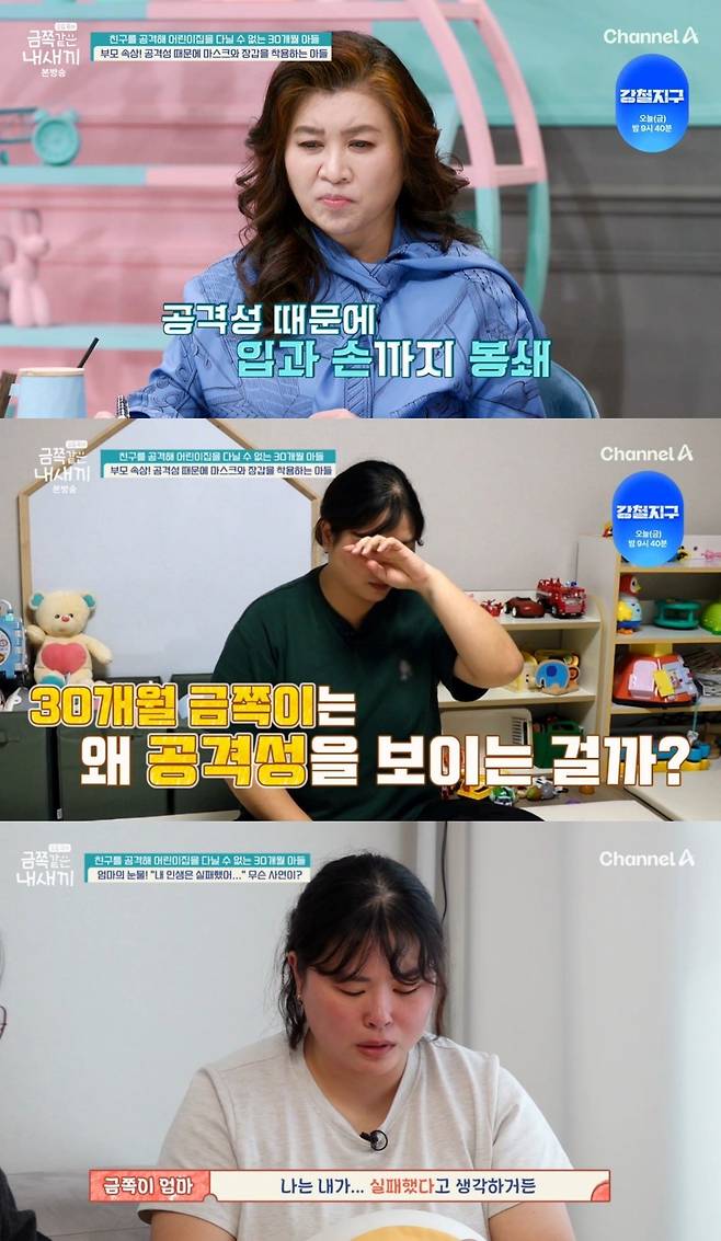 25일 방송된 채널A '요즘 육아 금쪽같은 내 새끼'(이하 '금쪽같은')에서는 친구들을 향한 공격성 문제로 어린이집을 다닐 수 없는 30개월 금쪽이네 가족이 등장했다.