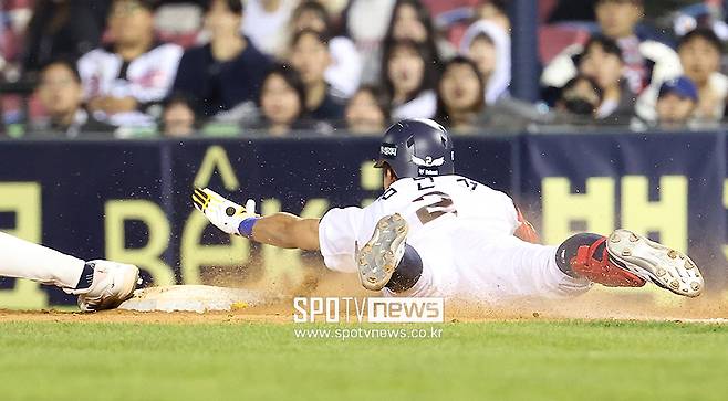 헤드퍼스트 슬라이딩 시도한 김민석, 첫 친정 맞대결에서 쏟아낸 열정