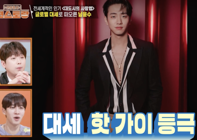 이날 방송에서 남윤수는 "글로벌 핫가이"라는 소개와 함께, 최근 방영된 드라마 ‘대도시의 사랑법’에서 섬세한 사랑 이야기를 풀어내며 주목을 받았다.