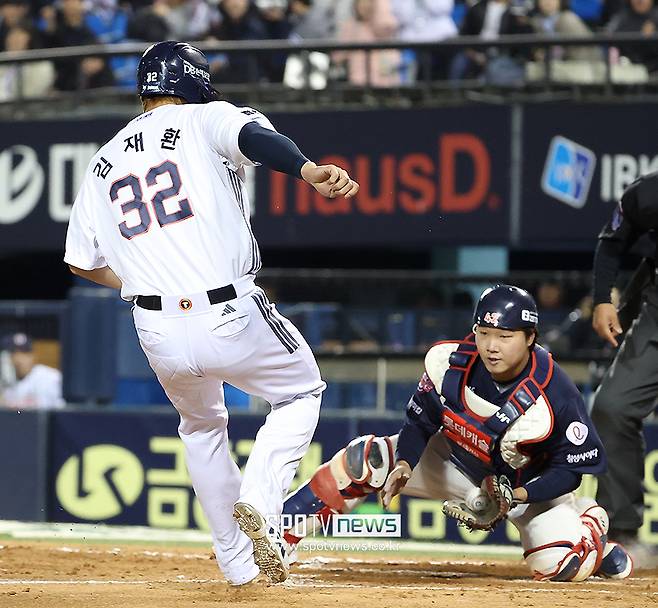 '고토 코치도 말렸는데 도대체 왜 뛴 거야?' 김재환, 찬물 넘은 얼음물 주루사