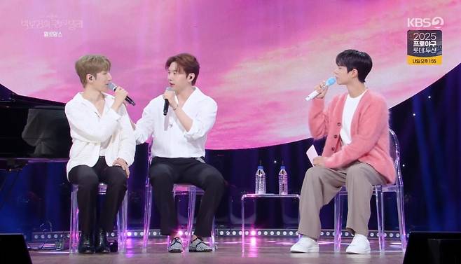 이날 방송에서는 오는 29일 발매 예정인 여덟 번째 미니앨범 ‘로망스 익스프레스(Romance Express)’의 수록곡 세 곡이 선공개됐다. 원래 타이틀곡 후보였던 ‘괜찮아 사랑이야’는 애절한 가사와 아름다운 피아노 선율로 따뜻한 봄 분위기를 자아냈다.