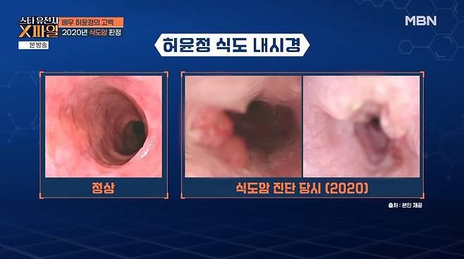 26일 오전 MBN '임성훈의 스타 유전자 X파일'에서는 허윤정이 출연, 5년 전 식도암 판정을 받고 식도 24㎝를 절제했다고 밝혔다.