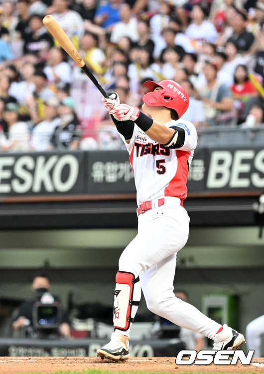 김도영은 26일 광주-기아 챔피언스필드에서 열린 2025 프로야구 LG 트윈스와의 경기에 선발출전해 첫 타석에서 선제 적시타를 터트렸다. 이어 두 번째 타석에서 우월 솔로포를 가동했다.