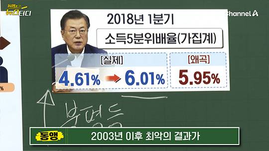 또 문재인 정부의 핵심 경제정책, ‘소득주도성장’이었죠. 소득을 늘려서 경제를 성장시킨다며, 소득을 빨리 늘게 하려고 최저임금을 올렸죠. 이게 오히려 기업과 자영업자에게 부담이 돼서 고용률을 떨어뜨린다, 결국 일자리를 잃는 건 서민이라는 비판이 있었는데요. 문 대통령은 “소득을 늘리면 경제가 성장한다”면서 “가계동향조사를 보면 소득주도성장의 효과가 분명하게 나타난다”고 발표했습니다. 하지만, 이 가계동향조사도 왜곡한 정황이 있다는 겁니다.