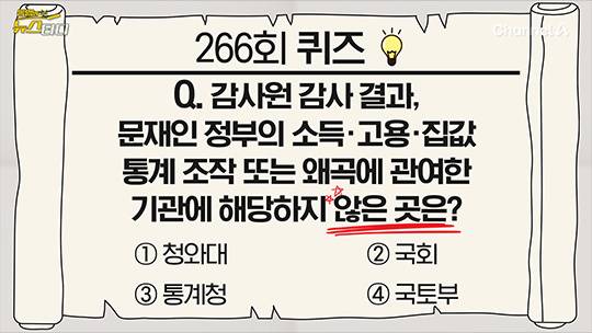 3분기에도 가계소득이 0.9%인데, 2.1%로 올랐다고, 근로소득은 0.8% 떨어졌는데 1.6% 오른 걸로 가중치 적용해 왜곡한 결과를 발표합니다. 4분기도 실제로는 가계소득이 2.8% 올랐는데, 3.1% 오른 걸로, 근로소득도 떨어진 걸 오른 걸로 왜곡한 겁니다. 그리고 통계 작성 때 가중치를 적용했다는 건 공개하지 않습니다. 관련자들은 가중치 매긴 건 통계 조작이 아니라는 논리를 드는데, 감사원은 왜곡이라고 보죠. 마음대로 가중치 매기면 안 된다는 거예요.